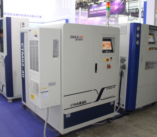 新昱智能參展團(tuán)隊(duì),左五為公司總經(jīng)理王蘇華先生、左四為銷售總監(jiān)劉傳臺(tái)先生 新昱科技銷售總監(jiān)劉傳臺(tái)先生表示:“針對(duì)新能源汽車和“大型一體化壓鑄”對(duì)超大溫控組單元及數(shù)量眾多的水溫機(jī)的要求,新昱科技加大研發(fā)投入,歷時(shí)三年成功開發(fā)出CTM大型高溫水路控制系統(tǒng)(簡(jiǎn)稱:CTM)。單臺(tái)CTM大型高溫水路控制系統(tǒng),可替代溫控組單元中的十多臺(tái)水溫機(jī),使得超大型壓鑄島溫控組單元更加節(jié)省占地空間、節(jié)省成本、節(jié)能降耗以及精準(zhǔn)溫控。”