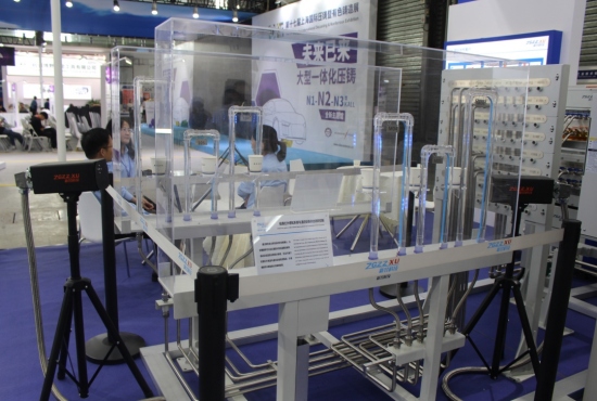 ![]() 新昱科技展臺(tái)吸引眾多專業(yè)觀眾及買家前來咨詢商洽 日前(2023年7月12日-14日),“2023上海國(guó)際壓鑄展”在上海新國(guó)際博覽中心隆重舉行。本屆展會(huì),吸引了463家來自壓鑄及有色鑄造企業(yè)參展,展覽面積達(dá)36900平方米,參觀人數(shù)超過25000人次,均創(chuàng)歷史新高。各參展商帶來了眾多新產(chǎn)品、新技術(shù)及解決方案,集中展示,同臺(tái)競(jìng)技。專業(yè)工業(yè)溫控設(shè)備制造商——寧波新昱智能科技有限公司(簡(jiǎn)稱“新昱科技”)“亮相”展會(huì),攜多款壓鑄溫控設(shè)備參展,并首次展出的MISS模具紅外感知系統(tǒng)。 溫控設(shè)備在壓鑄生產(chǎn)中提升鑄件質(zhì)量的作用越來越突出。隨著壓鑄行業(yè)轉(zhuǎn)型升級(jí)加速,用戶對(duì)鑄件的品質(zhì)要求越來越高,這為溫控設(shè)備廠商帶來機(jī)遇與挑戰(zhàn)。新昱科技系專業(yè)提供壓鑄溫控設(shè)備及溫控島解決方案的企業(yè)。本屆展會(huì),新昱科技展示了創(chuàng)新產(chǎn)品——CTM中央水路控制系統(tǒng),MISS模具紅外感知系統(tǒng),以及水模溫機(jī)、油模溫機(jī)、高壓點(diǎn)冷機(jī)、機(jī)邊冷卻單元以及CTCU模溫集中控制系統(tǒng)。現(xiàn)場(chǎng),還展示了以模具紅外感知系統(tǒng)與溫控設(shè)備聯(lián)合閉環(huán)控制的3D模型。