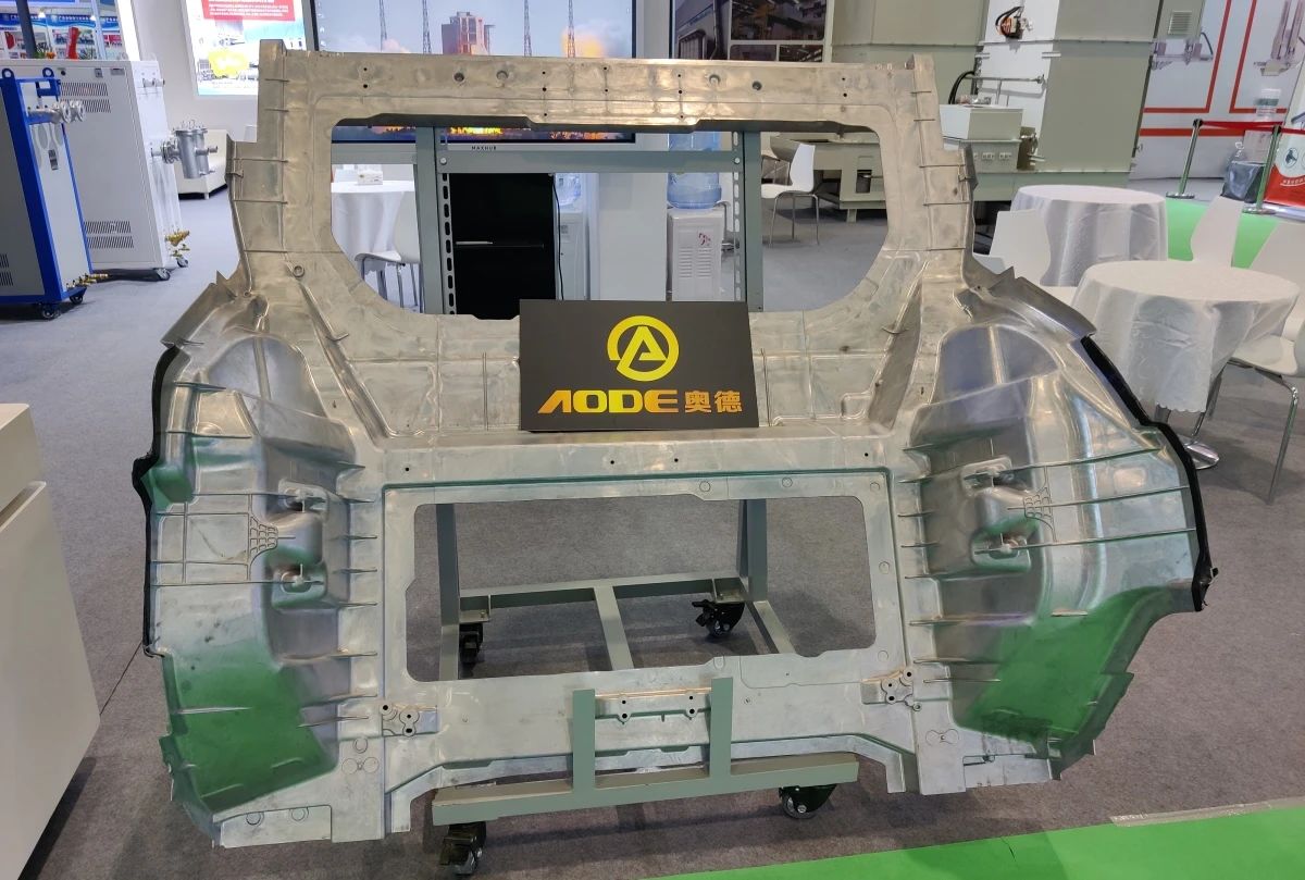 奧德機(jī)械展示的一體化壓鑄(汽車)后地板 奧德機(jī)械是工業(yè)溫控裝備系統(tǒng)集成商、精密冷熱溫控設(shè)備制造商。公司溫控設(shè)備廣泛應(yīng)用于壓鑄、化工、半導(dǎo)體、檢測、橡塑、復(fù)材、片板膜等行業(yè)和領(lǐng)域。奧德持續(xù)致力于壓鑄行業(yè)溫控解決方案的研發(fā)和完善,從高溫、中溫、低溫溫控設(shè)備到模溫集成控制系統(tǒng),其全方位、一站式的解決方案確保了生產(chǎn)過程中的溫度穩(wěn)定控制,有效減少了壓鑄件缺陷,縮短了壓鑄周期,提升了智能化生產(chǎn)效率,從而助力企業(yè)增強(qiáng)市場競爭力。