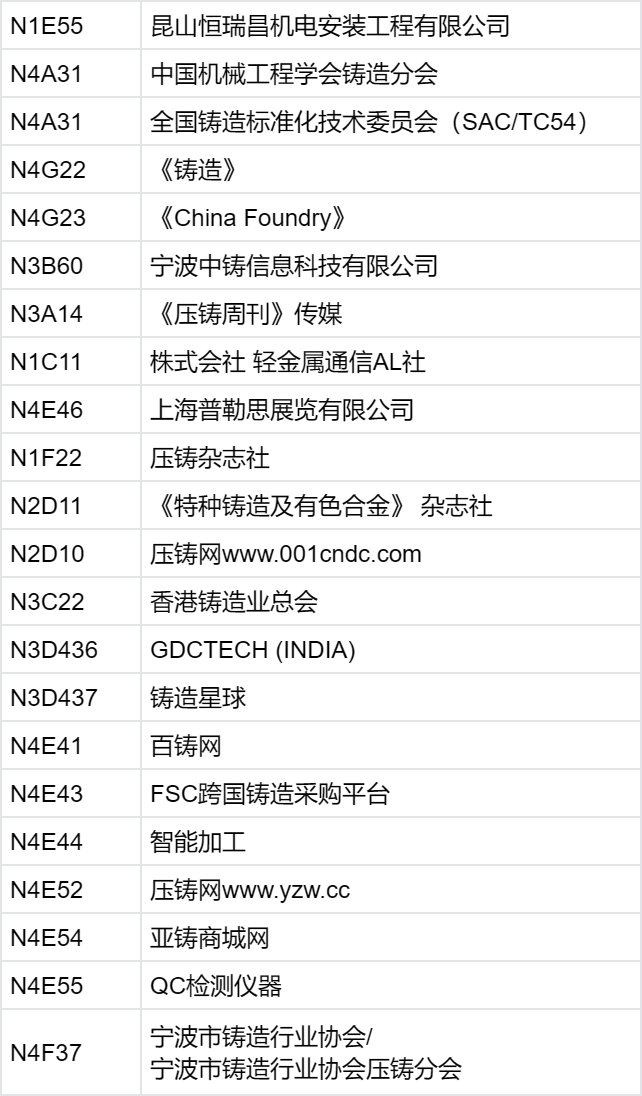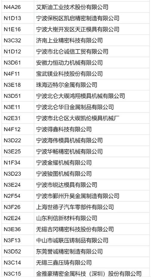 *以上為部分參展企業(yè)名單,排名不分先后 2025第十九屆上海國際壓鑄展將于2025年7月16-18日,在上海新國際博覽中心 N1-N4 館舉行。觀眾掃碼預(yù)登記有驚喜!