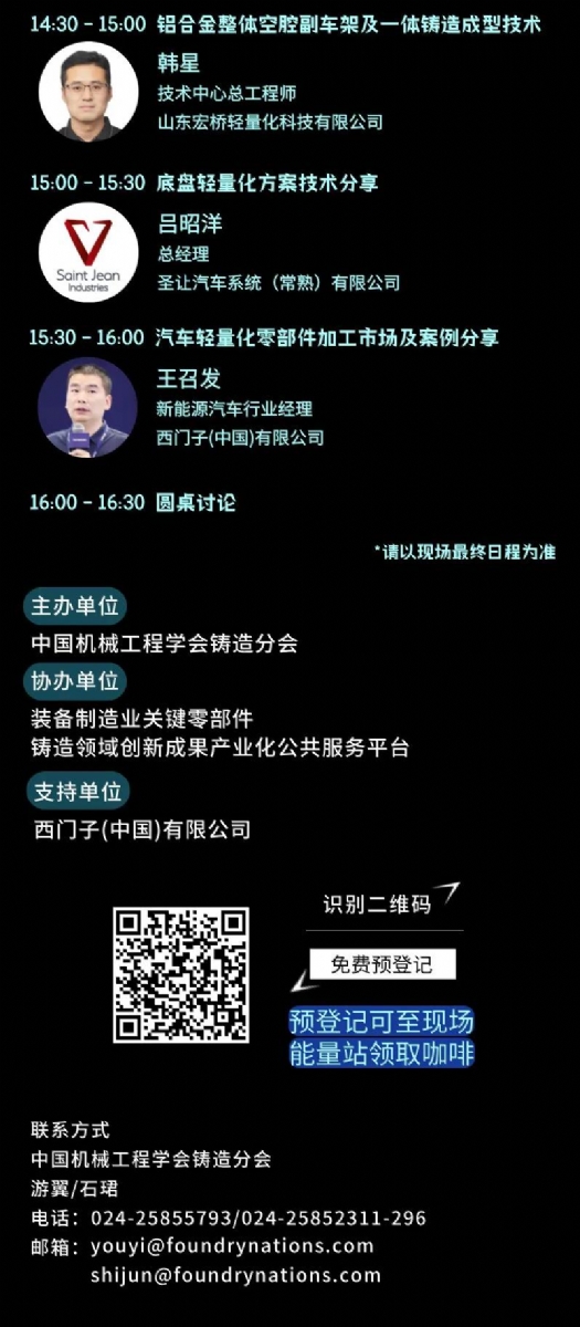 壓鑄創新技術發展論壇(含材料、設備、檢測等全流程解決方案分享) 現場Demo:觀看壓鑄到檢測的全流程。 科技導覽團:專家帶隊逛展 "3小時=3個月技術調研?科技導覽團成頭部企業采購部‘外掛大腦’"!