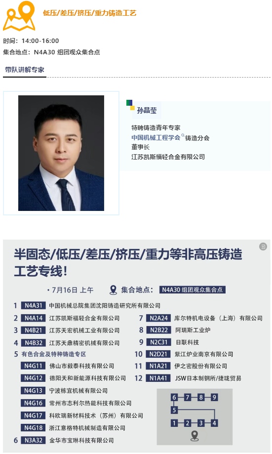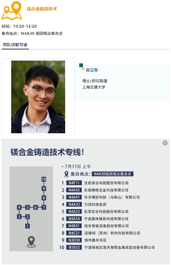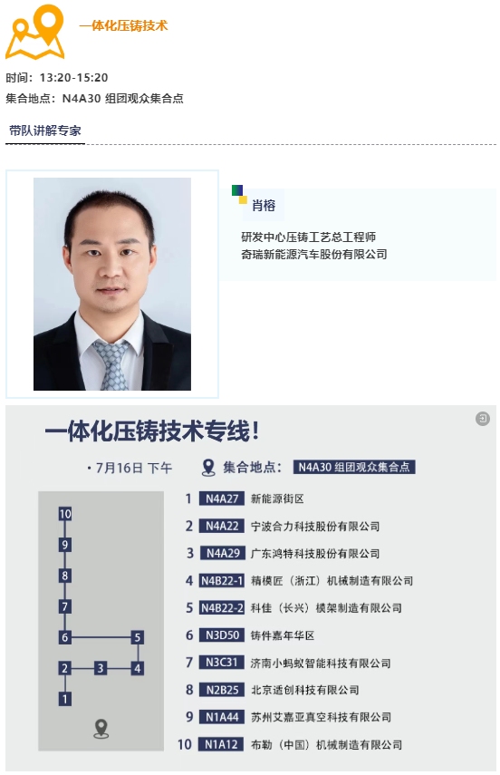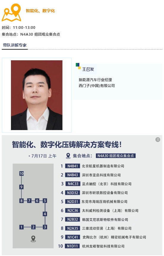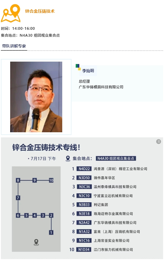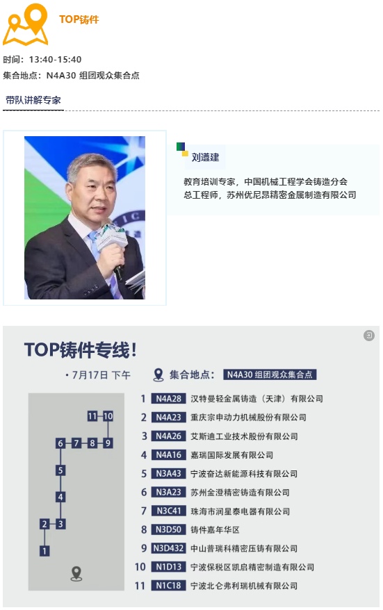 科技導(dǎo)覽團(tuán) 為助力您省時(shí)省力、輕松、高效觀展,第十九屆上海國(guó)際壓鑄暨有色鑄造展特別推出科技導(dǎo)覽團(tuán),精心規(guī)劃多條不同的參觀線路,專人導(dǎo)覽,直擊意向展商。 * 活動(dòng)不收取任何費(fèi)用,數(shù)量有限,提交報(bào)名表后,我們會(huì)有專人與您確認(rèn)相關(guān)細(xì)節(jié)。