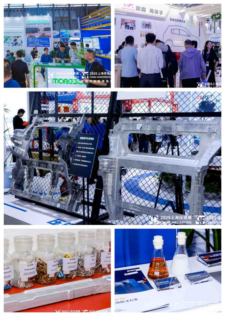 鎂合金鑄造技術(shù)及創(chuàng)新應(yīng)用盤點 JSW日本制鋼所/捷瓏貿(mào)易帶來高性能鎂合金射出成型機(jī);力勁集團(tuán)推出TPI鎂合金半固態(tài)觸變成形技術(shù)、臥式擠壓鑄造機(jī),突破高精度成型瓶頸;伯樂智能1000T創(chuàng)新二板式大型鎂合金半固態(tài)注射成型機(jī),助力輕量化制造。應(yīng)用端,嘉瑞集團(tuán)鎂合金多合一電驅(qū)殼體集成化設(shè)計亮眼,華孚科技汽車儀表盤基座、宜安5G屏蔽蓋及精明DSB00865鎂合金鑄件,寶武鎂業(yè)鎂合金三板模中控骨架等,展現(xiàn)鎂合金在新能源與電子領(lǐng)域的廣闊前景。此外,配套的專門產(chǎn)品同樣不可或缺,包括史杰克西可持續(xù)的鎂熔煉和定量給料解決方案,深圳日昭的鋁 / 鎂壓鑄件去毛刺設(shè)備、奧德的大型一體化壓鑄模溫控制系統(tǒng)解決方案等,為行業(yè)全鏈條發(fā)展提供了完善保障。