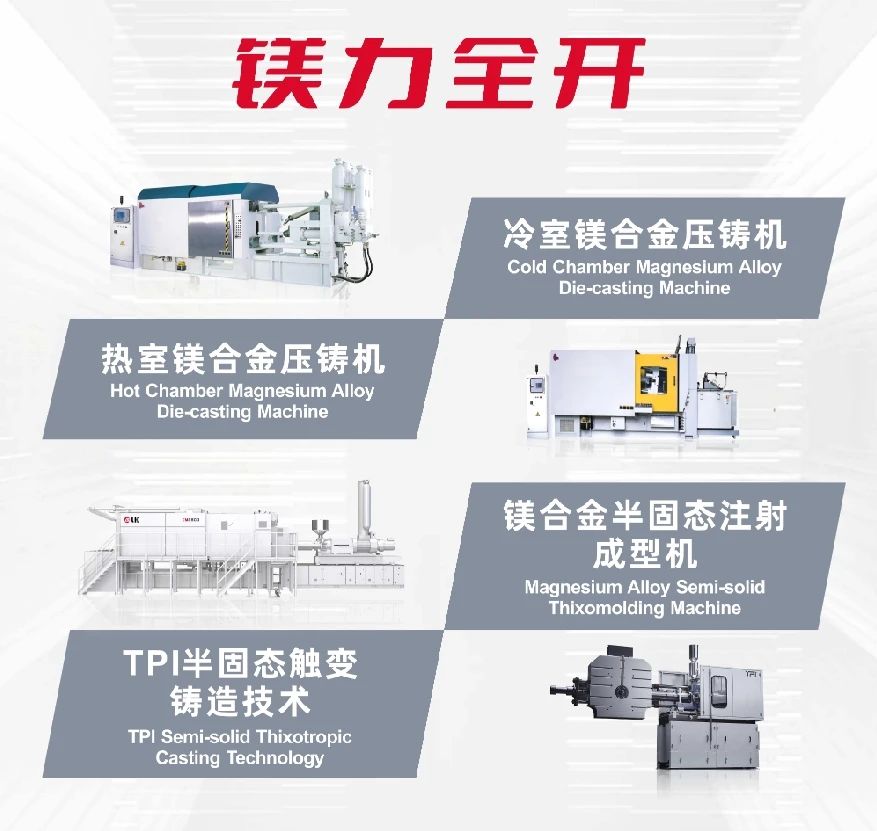 2000年:發(fā)布中國首臺熱室機鎂合金壓鑄機DC160M/冷室鎂合金機DCC630M (二)四大技術解決方案:解鎖鎂合金全場景應用潛能 力勁現(xiàn)場發(fā)布的鎂合金成型技術矩陣,為輕量化時代提供全方位答案: