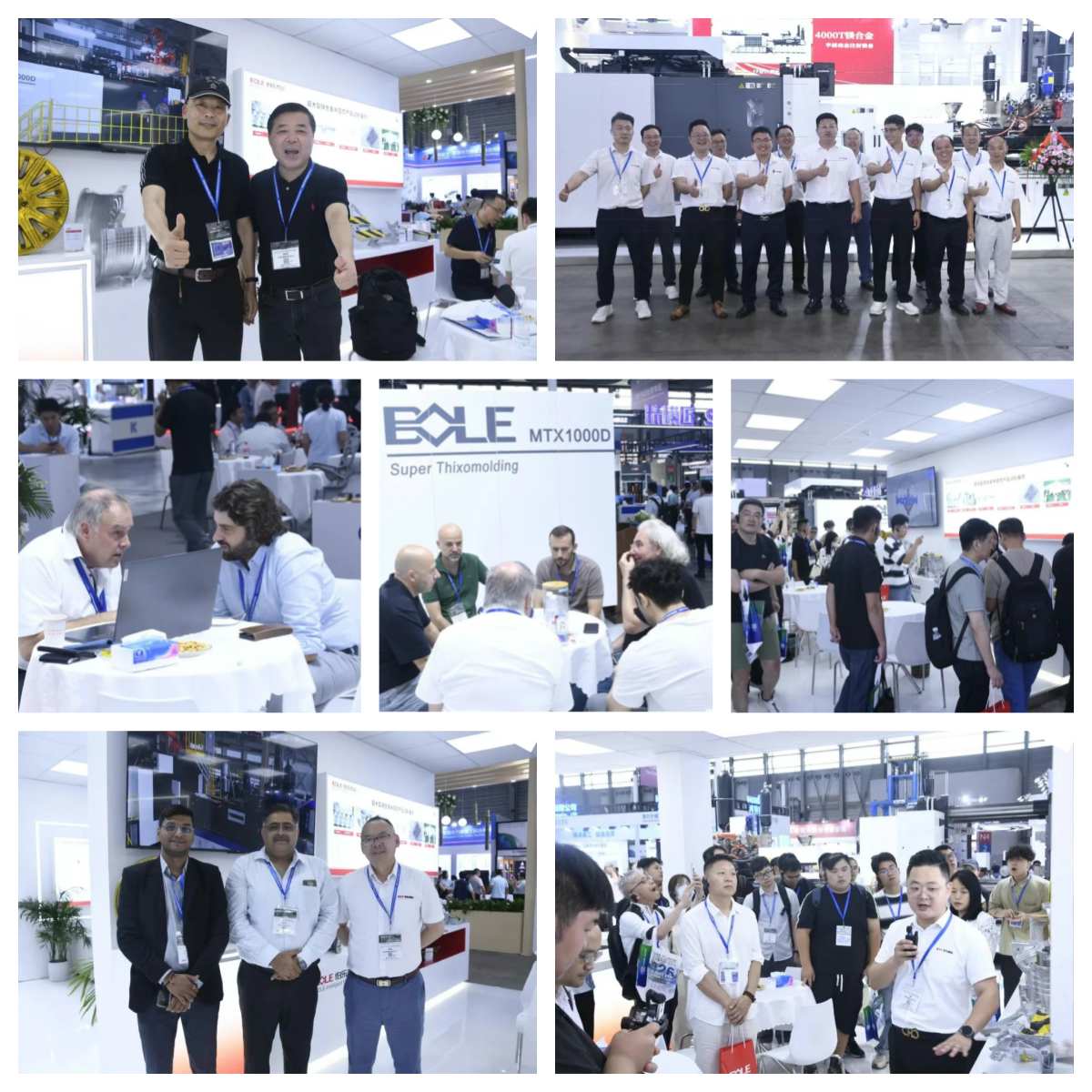 展會盛況 工藝革新:采用半固態觸變成型技術,將鎂合金顆粒加熱至半固態后直接注射,無需熔爐與保護氣體,從源頭消除氫脆、氧化夾雜等缺陷,產品良率從傳統工藝的75%提升至95%,單件生產周期縮短40%。 能效躍升:通過伺服電機與液壓系統深度耦合設計,配以專利的特殊軟件算法設備能耗較傳統壓鑄降低35%,單臺年節電量相當于減少碳排放800噸,契合歐盟碳關稅(CBAM)等國際綠色貿易壁壘要求。 應用拓展:伯樂智能成功試制新能源汽車鎂合金電機殼體,實現鎂合金在高壓電機核心部件的首次規模化應用,較鋁合金減重35%、散熱效率提升20%,為800V平臺熱管理提供關鍵解決方案;同步突破鎂合金輪轂等部件的半固態成型工藝,形成覆蓋動力、底盤系統的全場景輕量化技術矩陣。 02 戰略簽約:五大巨頭共筑“鎂基價值鏈”