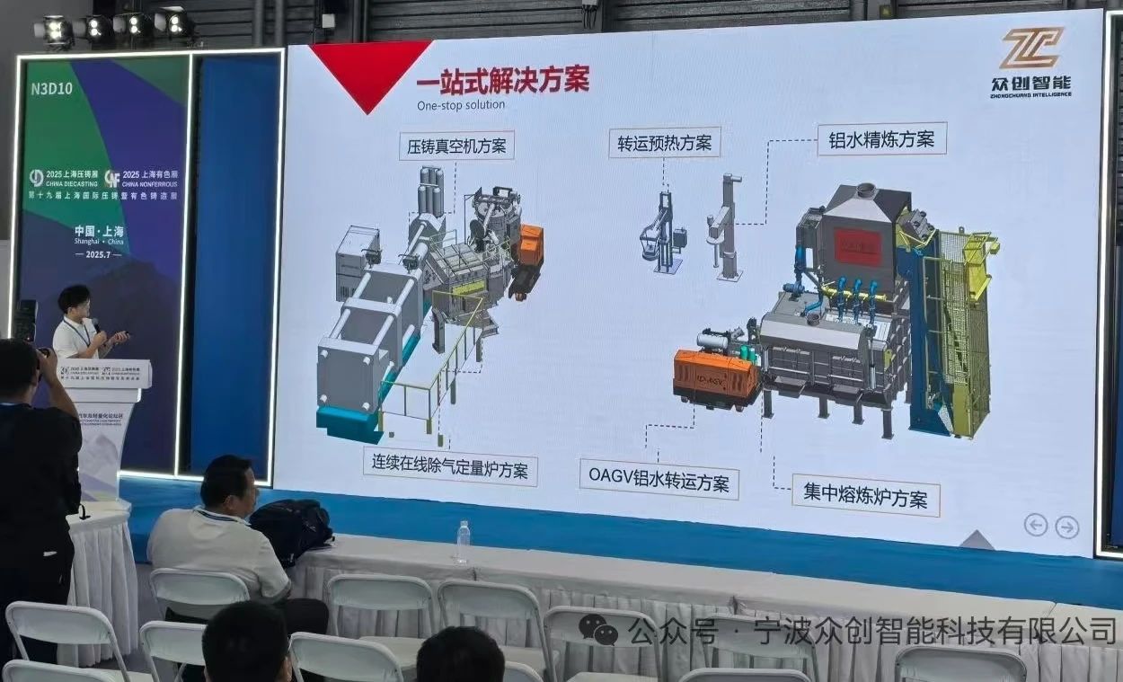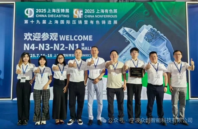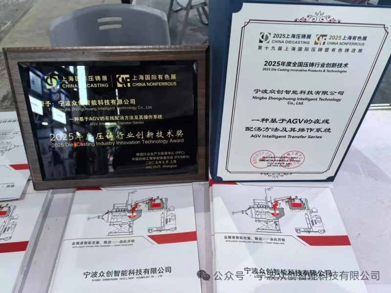 ![]() 眾創(chuàng)智能參展團(tuán)隊 日前,第十九屆上海國際壓鑄暨有色鑄造展在上海新國際博覽中心圓滿落幕。寧波眾創(chuàng)智能科技有限公司(簡稱“眾創(chuàng)智能”)在本屆展會上主要推介了其兩款創(chuàng)新產(chǎn)品——AGV智能配湯線、ZCD連續(xù)在線轉(zhuǎn)子除氣定量爐。眾創(chuàng)智能申報的“一種基于AGV的在線配湯方法及其操作系統(tǒng)”榮獲展會主辦方頒發(fā)的“2025年度壓鑄行業(yè)創(chuàng)新技術(shù)及產(chǎn)品”稱號。