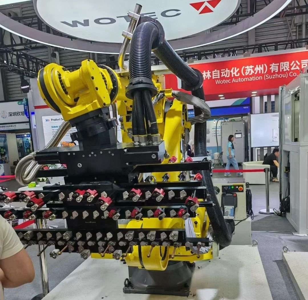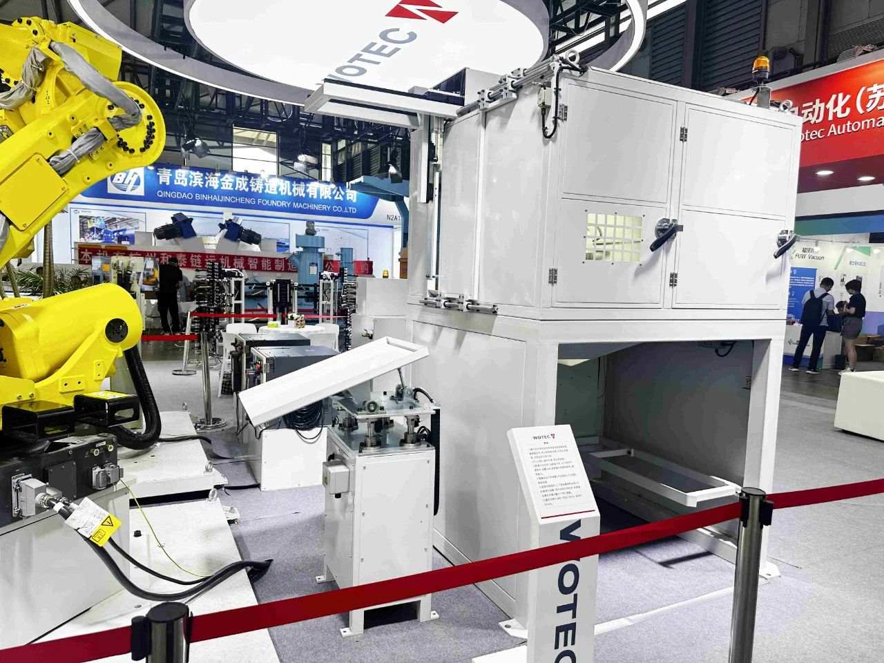 ![]() 沃爾林自動化副總經理韓剛與德國沃爾林同事 近期,第十九屆上海國際壓鑄暨有色鑄造展在上海新國際博覽中心隆重舉行。作為壓鑄島自動化整體解決方案提供商,沃爾林自動化(蘇州)有限公司(簡稱“沃爾林自動化”)攜多款核心產品與創新技術亮相行業年度盛會,集中展示了其在壓鑄自動化領域的積累與實力。 本次展會,沃爾林自動化重點推薦其大型壓鑄島自動化集成解決方案,并現場實物展出多款應用于大型及超大型壓鑄島的智能仿形噴涂系統、大型制品抓取系統、自動伺服鋸床系統、脫模劑供液系統等核心技術及關鍵設備,全面呈現智能化、模塊化、高效節能的現代壓鑄生產生態。 智能仿形噴涂系統:精準高效,靈活適配 沃爾林自動化展出的仿形噴涂系統采用模塊化設計,噴頭內部管路由高精度鋁制模塊鉆孔成型,結合平面密封結構,有效防止漏水漏氣,確保系統長期穩定運行。大通徑設計保障多噴嘴同時開啟時仍具備充足的水氣供應能力。