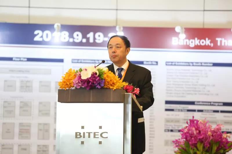 泰國鑄造協會會長PaisanSomprakit博士致詞 19日上午,主辦單位為展會舉行了隆重的開幕式,中國機械工程學會鑄造分會秘書長蘇仕方先生致開幕詞,泰國鑄造協會會長PaisanSomprakit博士致詞。