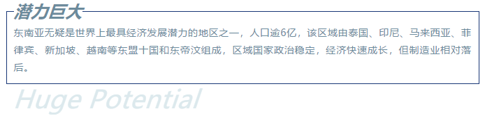 中國政府與東盟已簽署自由貿易協定,東盟國家間本身商貿自由、經濟一體化。 龐大的市場同樣催生東南亞地區涉及鑄造、壓鑄、工業爐、冶金等基礎產業的需求。國際主流整車及零部件廠商均在此設廠,建材、3C、機電等下游用戶企業眾多,各國基建項目加速,對金屬零部件及其配套生產設備形成巨大市場需求。