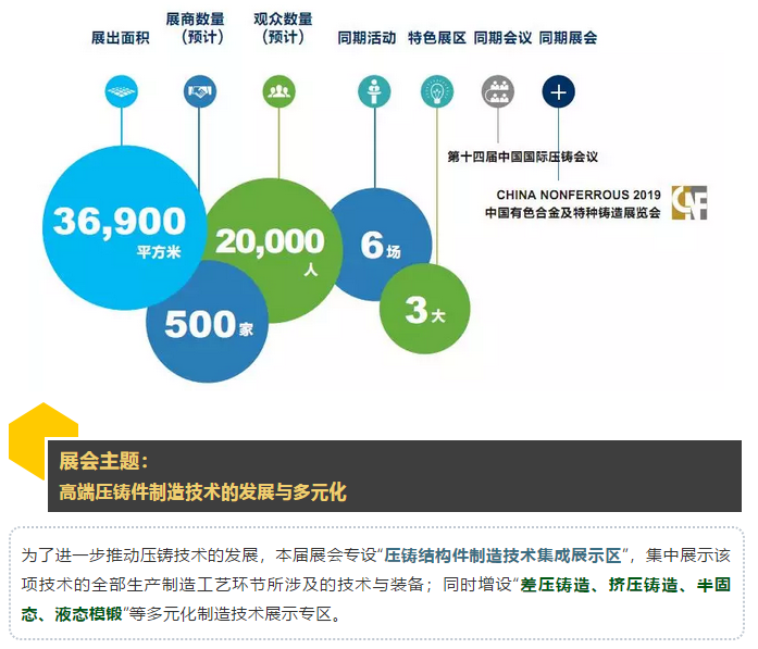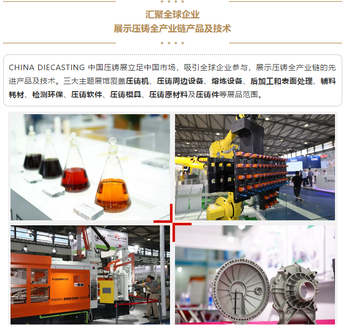 - 優(yōu)質(zhì)壓鑄件評(píng)選及展示 - 鋁鎂鋅材質(zhì)鑄件,分類評(píng)選,優(yōu)勝角逐; 汽車技術(shù)日:引領(lǐng)未來(lái)、專注發(fā)展 - 展示、論壇、熱議壓鑄未來(lái)科技、探討應(yīng)用與發(fā)展 模具高峰論壇:綠色智能、創(chuàng)新發(fā)展 - 模具制造及模具鋼等原材料集結(jié),探討發(fā)展思路,推動(dòng)行業(yè)進(jìn)步 先進(jìn)有色日:
