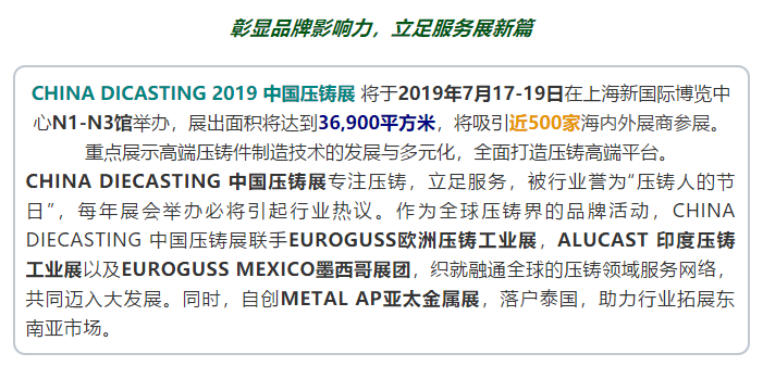 - 壓鑄行業(yè)高端會(huì)議,聚集高等院校、國(guó)家重點(diǎn)實(shí)驗(yàn)室、國(guó)內(nèi)外知名企業(yè)的專家學(xué)者和業(yè)界精英,分享精彩的報(bào)告,共謀行業(yè)發(fā)展 鑄件專題日:優(yōu)質(zhì)鑄件、競(jìng)獎(jiǎng)賞析