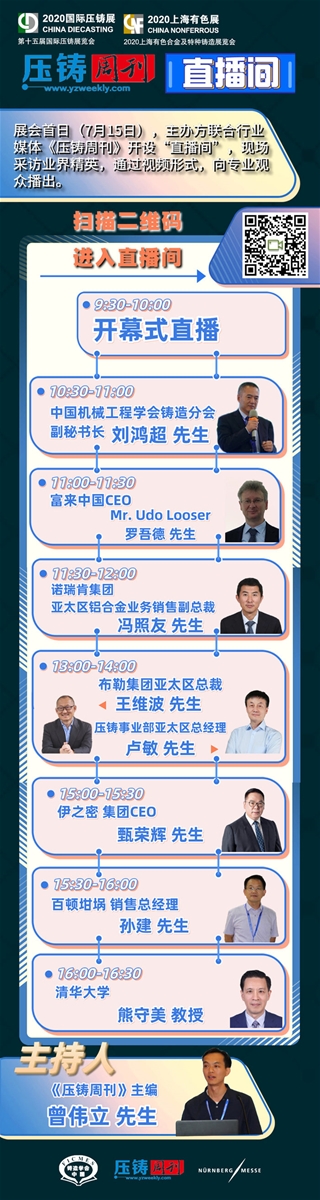 展會第一天(7月15日),主辦方聯(lián)合行業(yè)媒體《壓鑄周刊》開設(shè)“直播間”,現(xiàn)場采訪業(yè)界精英,通過視頻形式,向?qū)I(yè)觀眾播出。