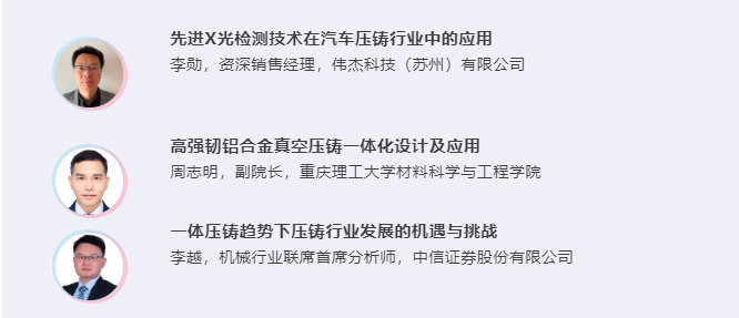 2021年,隨著超大型壓鑄機的發(fā)布,意味著全球壓鑄行業(yè)正朝著大型化與集成化方向快速前進。與傳統(tǒng)的沖壓焊接成型工藝相比,“一體壓鑄成型工藝”在輕量化、成本等方面具有顯著優(yōu)勢,壓鑄行業(yè)又一次迎來了技術的顛覆。值此行業(yè)發(fā)展的關鍵期,2022全國壓鑄年會將緊跟產品、技術、市場趨勢,聚焦“大型一體化壓鑄引領的技術創(chuàng)新與產業(yè)發(fā)展”主題,與壓鑄同仁一起在行業(yè)變革中突圍,誠邀各位壓鑄同仁蒞臨參會!