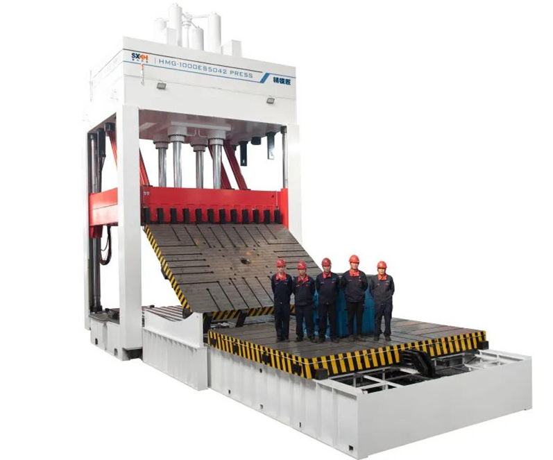 創(chuàng)新技術(shù):超大型配模試驗機(jī)(合模機(jī)) 申報企業(yè):寧波順興開浩精工機(jī)械有限公司 創(chuàng)新背景: 目前越來越多的車企正在研發(fā)、投入一體化壓鑄成型技術(shù),隨之而來的壓鑄模具的噸位也越來越大,有些模具重量甚至接近200噸。在6000T壓鑄機(jī)未面世之前,合模機(jī)最大噸位為600噸(合模力),工作臺面尺寸小于4200mm×3500mm,適用于5000T以下壓鑄島。在此背景下,傳統(tǒng)的配模試驗機(jī)已無法滿足一體化壓鑄模具的配模條件,因此順興開浩公司于2020年著手研發(fā)超大型配模設(shè)備,先后開發(fā)出合模力800噸、1000噸超大型合模機(jī)。
