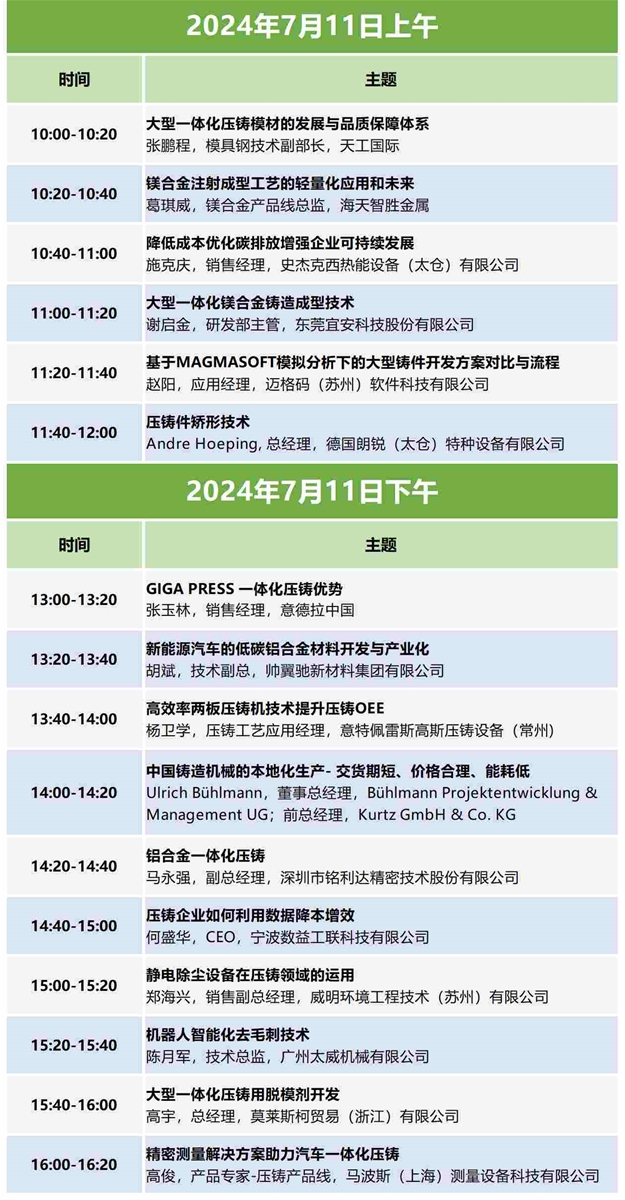 ![]() 2024上海國際有色壓鑄展 (CID & CNF) 順應”新能源汽車發展構建壓鑄全球化新格局“的新趨勢,同期舉辦“大道智簡—新能源汽車壓鑄技術創新發展論壇”,論壇聚焦副車架、鎂合金、數字化、大型一體化壓鑄、低碳可持續等行業熱點話題,近三十場精彩報告將在7月10-11日,上海浦東新國際博覽中心為您呈現! 新能源汽車壓鑄技術創新發展論壇 副車架生產工藝技術專題