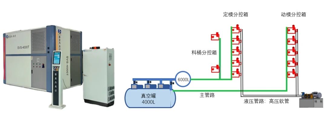 ![]() 賽亞杰DVS-1000T分體式真空機 在新能源汽車零部件壓鑄成型領域,對壓鑄件的產品品質要求日益嚴格,高真空壓鑄技術對壓鑄件質量和成品率具有至關重要的影響。賽亞杰技術團隊經過不懈努力,隆重推出2024款DVS系列真空機,并對SVS系列超大型壓鑄真空系統進行全面升級及性能提升。 2024款DVS系列真空機的優勢: 1.高度靈活的分組控制: 每組分控單元均可獨立控制,支持液壓閥、機械閥、排氣塊等多種組件的靈活搭配使用,例如1號通道使用液壓閥,2號通道使用排氣塊等,滿足多樣化生產需求。 2.三系統合一的高效集成: 將獨立液系統、抽真空系統、污染度吹掃系統三大系統完美融合。其中獨立液壓系統為賽亞杰專利產品,具有節能、穩定、響應速度快、曲線分析故障監控等多重優勢。 3.集成一體式分控箱單元: 市場上現有產品及傳統方案需要在壓鑄機上安裝分控箱、蓄能器閥組等多個部件,占用大量空間。賽亞杰新開發的一體式分控箱設計,顯著節約了安裝空間,減少了線路復雜度。 針對SVS系列在超大型一體化壓鑄方面的應用,賽亞杰投入巨資并派遣專業技術團隊進行產品優化開發。目前,已有6000T-20000T及萬噸雙壓射機型成功投放市場。超大型真空系統采用模塊化設計,包括真空泵站、控制系統、液壓系統、分控箱模塊等,可根據客戶需求定制從8組模具抽真空到16組模具抽真空、單壓射料筒抽真空到雙壓射料筒抽真空及頂針室抽真空等多種配置。 SVS系列超大型壓鑄真空系統的優勢: 1.多樣化的真空泵組選擇: 可根據客戶需求提供性價比高的旋片式真空泵組,以及與德國專業真空泵組廠家合作開發的無油免維護真空泵組和變頻油螺桿式真空泵組。 2.節能高效的真空泵站: 結合賽亞杰V3.0框架平臺,真空泵站具有節能、維護不停機及零停機風險等多重優勢。 3.先進的控制技術: 基于德國BECKHOFF PC和Ether CAT控制技術,掃描周期更快,數據處理速度更快,實現與主機的實時通訊,并通過壓射位置進行實時控制(精度控制在2mm以內)。 4.便捷的數據采集功能: 支持通過RJ45連接(PROFINET、Modbus TCP/IP)實現數據采集,便于MES系統的集成和應用。