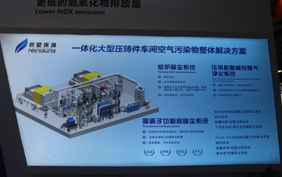 銳墾的熔爐除塵系統(tǒng)以其超低排放、專利降溫節(jié)能系統(tǒng)以及熔煉各工藝過程排風(fēng)自動控制等特性,贏得了眾多參展商和觀眾的關(guān)注。該系統(tǒng)在確保熔化能力最大化的同時,還能有效減少天然氣耗量,延長系統(tǒng)壽命,降低運(yùn)行成本。此外,壓鑄機(jī)脫模劑煙氣凈化系統(tǒng)、等離子切割房除塵系統(tǒng)以及機(jī)邊去毛刺機(jī)油霧過濾&除塵系統(tǒng)等環(huán)保產(chǎn)品,也充分展示了銳墾在解決壓鑄鑄造車間環(huán)保問題上的專業(yè)實力。