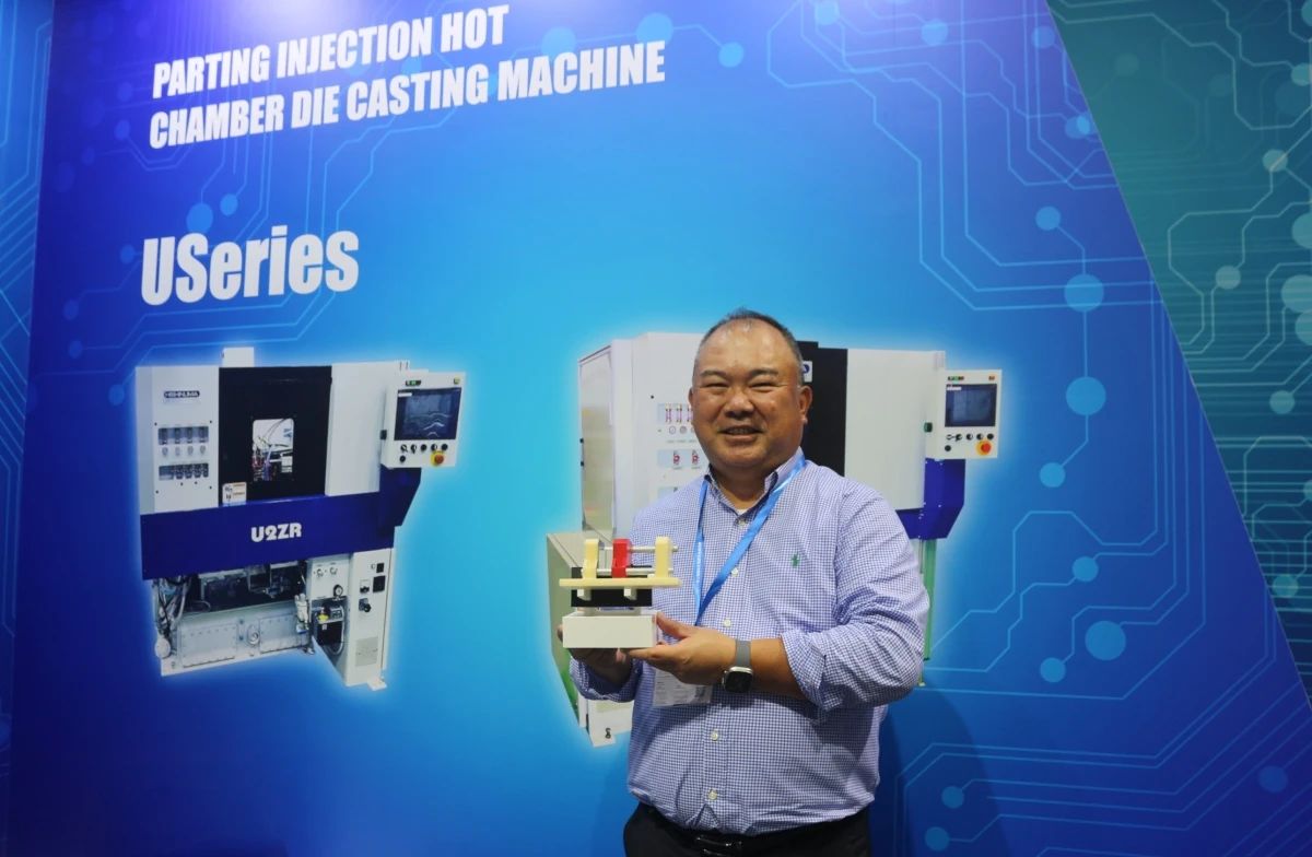 展會期間,《壓鑄周刊》記者有幸采訪了日本菱沼壓鑄機株式會社的社長菱沼省三先生。他分享了菱沼壓鑄機的發展歷史和對壓鑄行業的看法。菱沼省三先生表示:“菱沼壓鑄機擁有超過60年的鑄造經驗和技術沉淀,一直專注于高精密壓鑄領域,在高精度要求及需求產量大的精密壓鑄件方面表現卓越,用戶反饋使用一直穩定良好,這是對我們最大的肯定。” 菱沼省三先生表示:“中國壓鑄市場潛力巨大,菱沼致力于高端壓鑄裝備的研發和生產,為用戶提供高效穩定的設備,創造更多價值。近年來,盡管菱沼U系列壓鑄機的成功面臨仿冒者的抄襲挑戰,但由于公司卓越的設計技術、精益求精的日本工匠精神以及不斷突破的技術盲點,U系列始終保持在技術巔峰,從未被超越。同時,菱沼生產的整套機器全部日本制造,這保證了機器的耐用性、穩定性和高品質。”