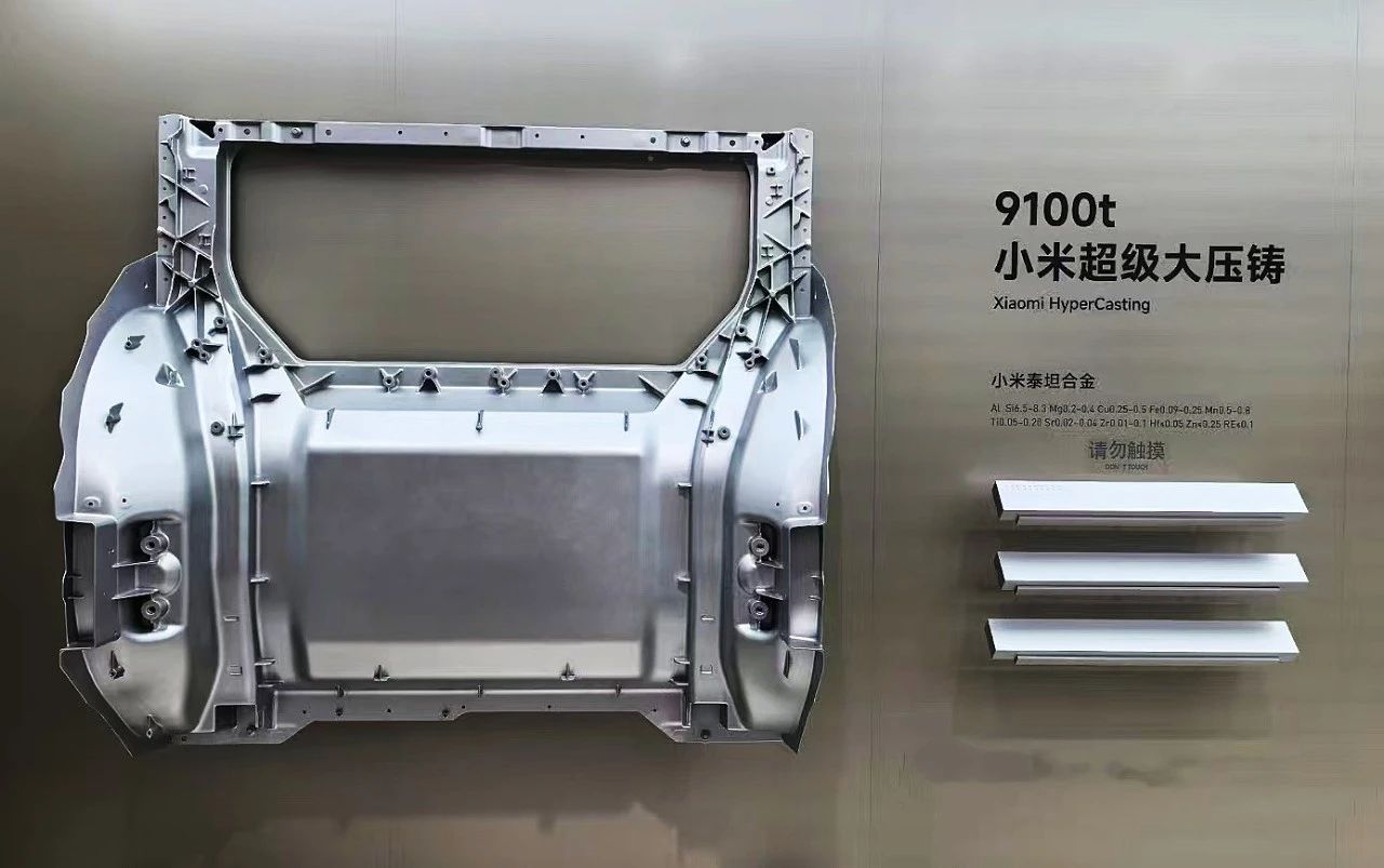 圖源:來賓市工業園區 安徽中鼎減震是安徽中鼎控股(集團)股份有限公司(簡稱“中鼎集團”)旗下子公司,成立于2005年5月,是汽車與鐵路工業減震橡膠金屬件領域的專業供應商。中鼎集團是以機械基礎件和汽車零部件為主導產業的跨國民營企業集團,業務范圍涵蓋機械基礎件、汽車零部件、液壓氣動密封件、機械電子、精密模具、汽車工具等多個領域。 小米YU7搭載一體化壓鑄鋁三角梁、大壓鑄后地板 5月22日,在小米15周年戰略新品發布會上,小米集團創始人、董事長兼CEO雷軍介紹了其首款豪華SUV小米YU7車型的安全信息。