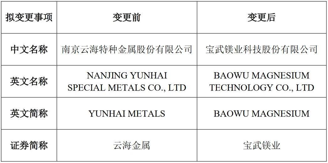 據介紹,鑫林模具一體化壓鑄模具裝配中心車間改造工程,于2022年12月啟動,于2023年7月完工,設備在此之后陸續進場。該改造擴建項目投入人民幣2500萬元,設計完成逾5000平方米的制造車間改造,以及擴建一個約1000平方米的重型裝配車間。車間配置了1000T合模機、200T/125T行車,引進5*4米五面體龍門高速銑、數臺大型機械/放電加工設備。 云海金屬擬更名為寶武鎂業,由國務院國資委控股 8月28日,南京云海特種金屬股份有限公司(簡稱:云海金屬)發布公告,根據《關于同意南京云海特種金屬股份有限公司向特定對象發行股票注冊的批復》(證監許可 (2023))1685 號),核準了云海金屬向寶鋼金屬有限公司(簡稱:寶鋼金屬)發行股份事項。寶鋼金屬將持股比例為 21.53%;公司現控股股東、實際控制人梅小明將持股比例為16.45%;結合《合作框架協議》中公司黨委會建立、董事會改選、監事會改選、高級管理人員設置等公司治理及人事安排,公司控股股東將變更為寶鋼金屬,實際控制人將變更為國務院國資委。