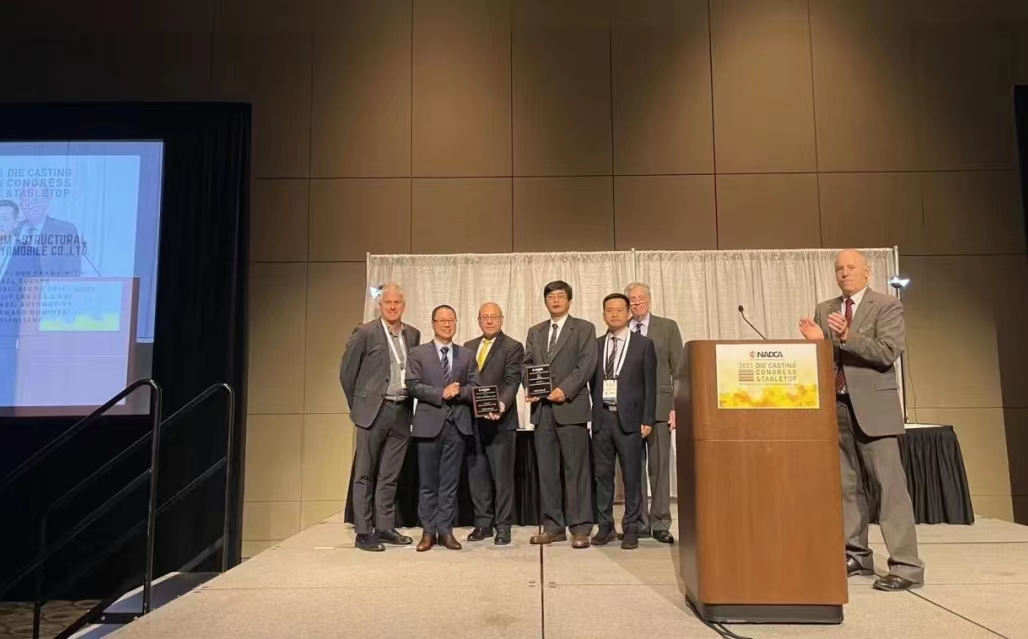 此次盛會(huì)頒發(fā)了北美壓鑄協(xié)會(huì)諸多年度大獎(jiǎng),其中,最值得關(guān)注的是最佳結(jié)構(gòu)件評(píng)比大獎(jiǎng)(Aluminum Structural),堪比壓鑄界的奧斯卡。經(jīng)過激烈的競(jìng)爭(zhēng)和評(píng)比,繼去年之后,本次最佳結(jié)構(gòu)件評(píng)比大獎(jiǎng)再一次頒給了國(guó)內(nèi)車企的大型一體化壓鑄部件。由賽力斯汽車主導(dǎo)設(shè)計(jì)、文燦集團(tuán)制造、帥翼馳新材料集團(tuán)/美鋁供應(yīng)材料,三方聯(lián)合申報(bào)的“集成輪罩后地板總成(Rear Floor with Wheel Covers)方案”摘得桂冠。