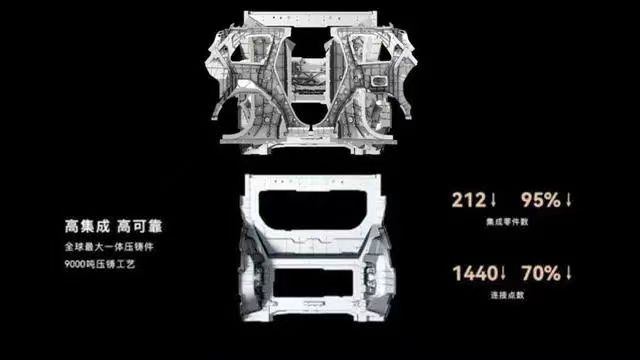 沃爾沃公布的汽車后底板一體化壓鑄技術(shù) 此次沃爾沃IPO募集的資金將主要用于沃爾沃汽車全面加速電動(dòng)化和智能化的轉(zhuǎn)型。其中,募集資金將用于電動(dòng)化轉(zhuǎn)型,包括在工廠中添置大型壓鑄機(jī),以及生產(chǎn)一體壓鑄成型的車身,以及新增電驅(qū)動(dòng)和內(nèi)置電池的生產(chǎn)線等,募集資金還將用于提高其制造能力等。此次IPO完成后,浙江吉利控股集團(tuán)(“吉利控股”)仍為沃爾沃汽車第一大股東。 華為問界M9采用9000T壓鑄機(jī)生產(chǎn)一體壓鑄后車體 9月25日,在華為秋季全場(chǎng)景新品發(fā)布會(huì),華為常務(wù)董事、終端 BG CEO、智能汽車解決方案 BU 董事長(zhǎng)余承東在發(fā)布會(huì)現(xiàn)場(chǎng)表示,年底華為將重磅推出新車——問界M9。