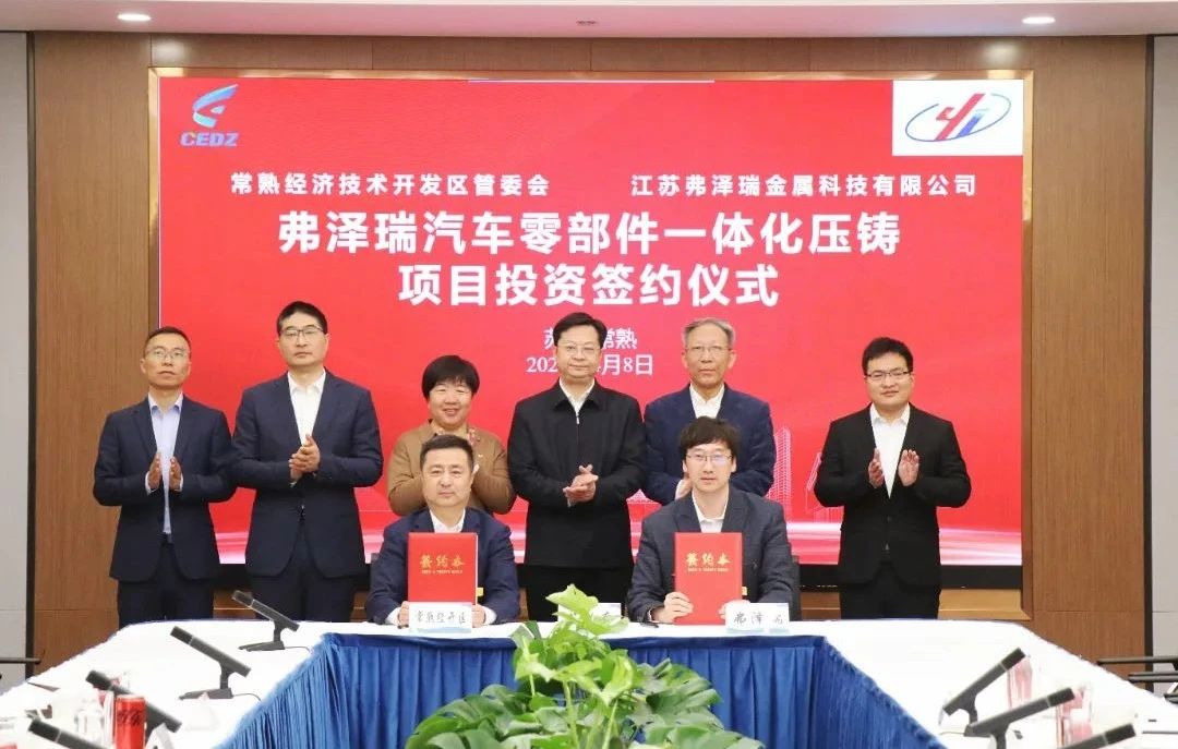 弗澤瑞一體化壓鑄項(xiàng)目落戶常熟 常熟經(jīng)開區(qū)發(fā)布消息,4月8日,江蘇弗澤瑞科技有限公司與常熟經(jīng)濟(jì)技術(shù)開發(fā)區(qū)管理委員會(huì)舉行投資簽約儀式,弗澤瑞新能源汽車零部件一體化壓鑄項(xiàng)目落戶常熟經(jīng)開區(qū)。該項(xiàng)目建設(shè)1.8萬平方米廠房,新增壓鑄島、大型一體式壓鑄機(jī)、壓鑄后處理設(shè)備、機(jī)加工中心、三坐標(biāo)檢測(cè)設(shè)備等高端自動(dòng)化設(shè)備120多臺(tái)套,打造華東研發(fā)生產(chǎn)總部基地。項(xiàng)目達(dá)產(chǎn)后年產(chǎn)450萬套汽車輕量化、高強(qiáng)度壓鑄零部件。