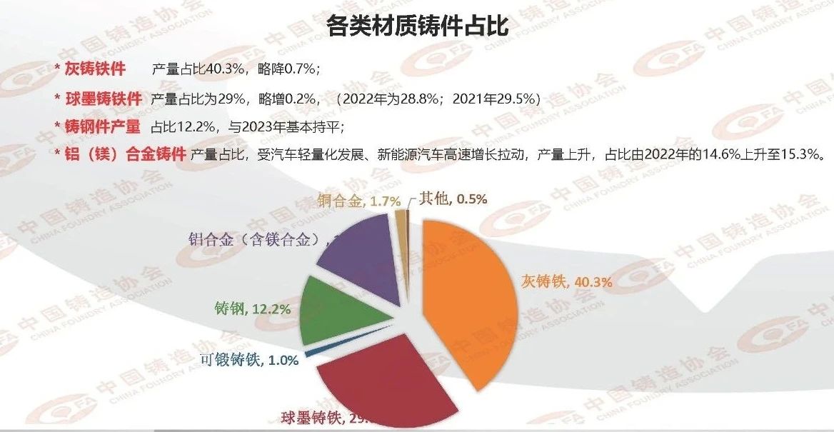 鎂材料密度低、比強度高,擁有良好的成型性能、散熱性能、減震性能及電磁屏蔽性能,使其與汽車行業(yè)追求高效、環(huán)保和舒適的發(fā)展方向高度契合。在汽車上應(yīng)用鎂合金材料,可以得到更輕的車身重量、更高的續(xù)航里程、更優(yōu)的駕乘體驗。 本次發(fā)布的鎂合金輕量化電驅(qū)產(chǎn)品重量與傳統(tǒng)鋁合金材料結(jié)構(gòu)相比減重2.5-7千克。同時,該產(chǎn)品還可以提升電機功率密度,通過材料自身吸振性,改善整車噪聲、振動與聲振粗糙度,并有助于優(yōu)化車輛的前后配重比,改善車輛的操控性能和駕駛感受。此外,該產(chǎn)品為鎂合金壓鑄電驅(qū)殼體,能夠?qū)崿F(xiàn)多功能一體化集成成型,零部件數(shù)量減少后,不僅降低了制造、組裝與物料管理成本,還能大幅提高系統(tǒng)整體耐用度。 2023年我國鋁(鎂)合金鑄件產(chǎn)量為795萬t 2024年7月2日,中國鑄造協(xié)會發(fā)布了“2023年度中國鑄造行業(yè)數(shù)據(jù)”。 2023年中國各類鑄件總產(chǎn)量5190萬t,同比微增0.4%,與上一年度基本持平。鑄件市場需求占比:汽車工業(yè)是鑄件最大需求用戶,2023年占比為29.3%。2023年,鋁(鎂)合金鑄件產(chǎn)量795萬t,同比增長5.3%。鋁(鎂)合金鑄件產(chǎn)量占比,受汽車輕量化發(fā)展、新能源汽車高速增長拉動,產(chǎn)量上升,占比由2022年的14.6%上升至15.3%。