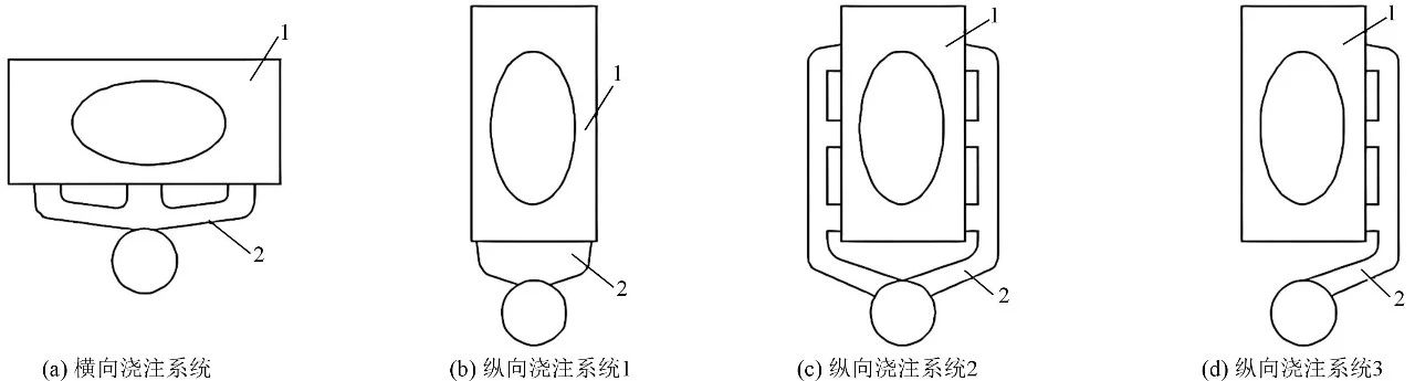 圖3 臥式壓鑄件常用澆注系統(tǒng)結(jié)構(gòu)