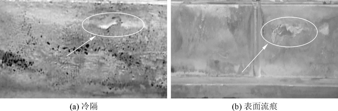 真空壓鑄件見圖3。觀察可知,3組散熱器真空壓鑄件外形完整,沒有出現充不滿的現象,外觀幾乎無差別。仔細觀察發現,L1部分散熱片產生了冷隔,見圖4,因此當產品受靜載或循環應力的時候很容易出現裂紋甚至斷裂,嚴重影響產品的使用安全性,另外還出現了表面流痕,這是由于快壓射速度低,首先進入壓鑄模具型腔內的金屬液形成較薄而不完整的金屬層后,被后續的金屬液覆蓋而留下痕跡,從而影響壓鑄件的表面質量,見圖4b。L2散熱片則沒有發現明顯的冷隔及表面流痕缺陷;L3由于快壓射速度較高,金屬液快速填充型腔時,對其造成很大的沖擊,易產生飛邊,增加了產品機加工的成本與時間,造成材料浪費,同時縮短模具壽命。