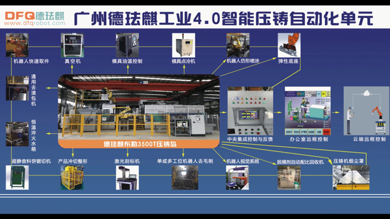 ![]() 廣州德琺麒開發的雙聯壓鑄島 來自廣州德琺麒自動化技術有限公司(“廣州德法麒”)的消息,該公司為廣東鴻特科技股份有限公司開發的智能自動化雙聯壓鑄島再獲殊榮,斬獲由香港創新技術及制造業聯合總會(FITMI)評選的FITMI香港創新科技成就大獎2019-“亞洲國際創新發明大獎”之“金獎”。 據了解,智能自動化雙聯壓鑄島此前已獲兩個獎項。在今年3月舉行的“2019中國鑄博會”上,獲得由中國鑄造協會評定的“2019全國鑄造裝備創新獎”;在7月的“2019中國壓鑄展”上,榮獲由鑄造行業生產力促進中心、中國機械工程學會鑄造分會聯合評定的“2019壓鑄行業年度創新技術獎”。 據悉,廣州德琺麒開發的雙聯壓鑄島,由兩臺2500噸宇部冷室壓鑄機、7臺發那科機器人,配搭定量給湯、鑄件取出、仿形噴霧、去渣包、刻標、鋸料柄、精沖、打毛刺等輔助設備,開發并運用中央集成、實時監控、遠程監控等軟件系統,組成一個雙壓鑄主機的柔性壓鑄島,完成壓鑄生產全工序過程智能自動化。該壓鑄島主要用于生產廣東鴻特客戶--福特汽車發動機缸體,生產線通過模塊切換,還可以生產減震塔等其他部件。