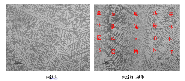 原標題:重復熱處理和補焊對低壓鑄造ZL104合金性能和組織的影響 Al-Si系鋁合金是一種具有較好的綜合力學性能和體積穩定性的鑄造鋁合金,目前被廣泛應用于各類輕型發動機。低壓鑄造具有充型平穩、充型速率可控、溫度場分布合理,并且在壓力下凝固時有利于鑄件補縮等特點,生產出的鑄件力學性能好、組織致密,可以有效減少鑄造缺陷,因此國內鋁合金鑄造越來越多的使用低壓鑄造的方式進行。 然而鋁合金鑄件,特別是Al-Si合金鑄件的尺寸、組織和性能受限于鑄造工藝和生產過程,鑄造后結構件不可避免的存在氣孔、縮孔、冷隔等缺陷,對其性能造成很大的影響[4]。特別是鋁合金鑄件在熱處理之后,經過打磨處理、熒光過程中會發現需要二次補焊的缺陷。同時鋁合金由于熱導率大、熱膨脹系數高,在焊接過程中容易出現裂紋、氣孔、未熔合以及氧化膜或夾雜(主要是Al2O3)等缺陷,最終也會導致鑄件出現二次補焊的情況,而現階段尚未見多次補焊和重復熱處理對低壓鑄造鋁合金鑄件組織和力學性能影響的研究。 本課題以ZL104合金為試驗合金,采用低壓鑄造熔模板狀試棒,針對反復補焊區域顯微組織和力學性能展開研究,以其為低壓鑄造鋁合金重復熱處理和多次補焊鋁合金鑄件的生產提供數據參考 一:試驗方法 以99.99%高純鋁、AlSi12A中間合金及99.99%精鎂錠為原料,采用150 kg、加熱功率75 kW電阻坩堝爐進行合金熔煉。合金經過熔化、氬氣懸吹精煉、撇渣靜置之后,將溫度調整至720~730 ℃之間,采用熔模低壓鑄造方式,鑄型為常溫,澆注溫度為730±5 ℃,升液/充型速度為120 mm/s,澆注壓差為40 kPa,結晶時間為80 s。最終澆注成板狀試樣,試樣尺寸為180 mm×40 mm×12 mm,試樣結構見圖1。采用OBLF-QSN-II發射光譜儀檢測試驗合金成分,結果見表1。通過Quanta FEI 400場發射掃描電鏡附帶的Oxford 50型能譜儀分析ZL104合金隨著焊接次數的增加,檢測各主要元素的燒損情況。試樣焊接完成后按照HB963-2005Ⅰ類標準采用2515射線機,電流為12 mA,電壓為65 kV,完成射線檢測。