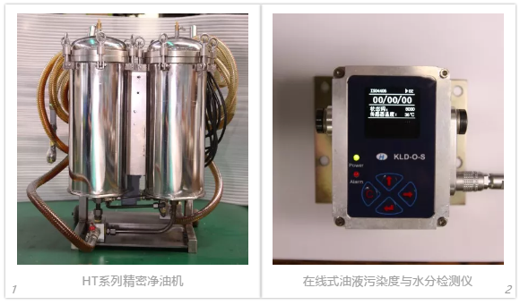 如19/17/14,查看代碼表:19表示≥4um的固體顆粒數量在2500-5000,17表示≥6um的固體顆粒數量在640-1300,14表示≥14um的固體顆粒數量在80-160.。數值越大,表示液壓油越臟。 行業內購買新油一般都在NAS1638的8-9級或者ISO 19/17/14 推出液壓油循環凈化服務 伊之密壓鑄機客服部經過長期的客戶調研發現,大部分客戶使用設備時都容易忽視液壓油品質,而且由此引發的故障維修居多,占故障維修總數的20%。 針對壓鑄行業液壓油品質管控服務的空白,以及本著為客戶創造更高價值的理念,伊之密壓鑄機客服部推出液壓油循環凈化服務,通過引進在線式油液污染度與水分檢測裝置、精密凈油機,進行顆粒度檢測及液壓油過濾,改善其雜質含量。下圖為伊之密客服人員在客戶車間濾油前后效果對比,濾油后油品等級可達到NAS1638的8級。