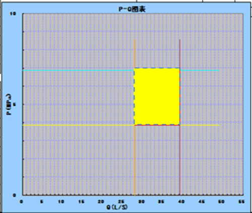 圖6:t轉換為Q在P-Q圖中的體現圖 3、壓鑄工藝窗口的確定 根據以上2.1、2.2分別確認好鑄件所需的內澆口速度范圍及填充時間范圍轉換為壓力P范圍和流量Q范圍后,在P-Q圖中兩者形成一個相交窗口,即工藝窗口,見圖7。
