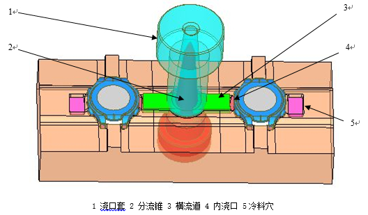 式中,GF=0.31c㎡代入式(3),可得直澆道截面積直F=0.37c㎡。 2、澆口套和分流錐設計