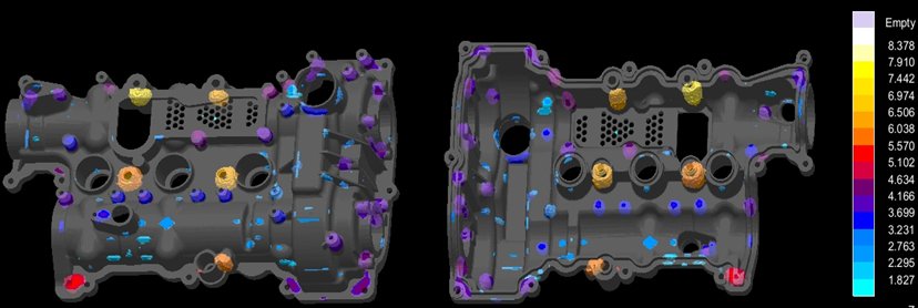 圖1:缸蓋罩殼體壓鑄零件 為了縮短開發周期,使用了壓鑄模擬分析軟件對鑄件進行凝固分析,以識別鑄件在冷卻凝固過程缺陷產生的程度和所在的位置,見圖2。