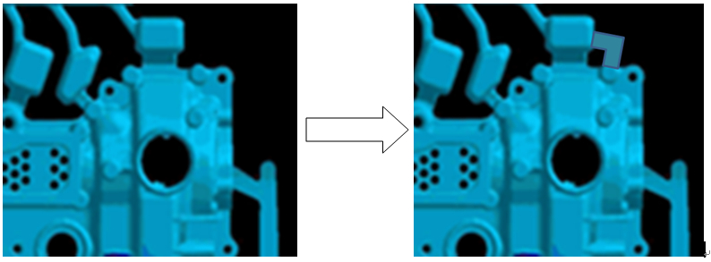圖8:普通排氣塊工藝缺陷分布 3.2高真空工藝的缺陷與普通排氣塊缺陷分析 可以看出,高真空工藝與普通排氣塊工藝的缺陷主要集中在熱模件、氣孔、加工不過、起級、夾層等缺陷;用普通排氣塊還有兩種缺陷為壓傷和扣傷。 高真空工藝的缺陷占比為4.38%,數量為18件,主要集中在K10/K11及L8區域;普通排氣的氣孔在整個缺陷中占比為16.31%,數量為38件,主要集中在L8及L9區。由于L8區域在高真空和普通排氣工藝中均有此缺陷,排除此位置的氣孔為排氣不暢產生。通過對熱節及模擬分析得出,此位置壁厚較厚,容易產生縮孔,缺陷位置處于鋁液填充尾部,通過壓鑄機的增壓不能解決該處縮孔,因此增加擠壓來改善該位置的縮孔。 使用普通排氣塊工藝,在L9位置有氣孔產生,主要是該處的排氣不暢,將該位置排氣口靠近氣孔產生位置增設溢流槽(見圖9)可以減少氣體壓力解決氣孔缺陷。