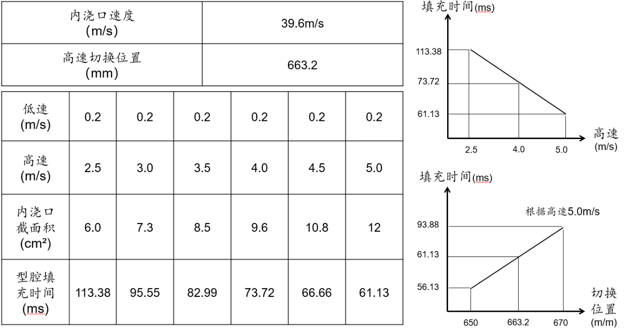 圖2:基礎(chǔ)數(shù)據(jù)計(jì)算表 在壓鑄機(jī)臺確定后,用戶根據(jù)產(chǎn)品的結(jié)構(gòu)特點(diǎn)輸入產(chǎn)品平均壁厚,MAGMASOFT?會計(jì)算出包含料管充填率,低速,高速切換位置,高速,內(nèi)澆口截面積,充型時(shí)間,內(nèi)澆口速度等在內(nèi)的全部工藝參數(shù)。軟件也將會根據(jù)此數(shù)據(jù)推薦出最佳的成型時(shí)間,成型時(shí)間與低速,高速切換位置,高速,內(nèi)澆口截面積等數(shù)據(jù)相關(guān)聯(lián)。使用者可以根據(jù)工廠機(jī)臺的實(shí)際性能,輸入不同的參數(shù),然后軟件將會生成內(nèi)澆口截面積和內(nèi)澆口速度等參數(shù)數(shù)據(jù)庫,此數(shù)據(jù)庫可稍后用來進(jìn)行工藝參數(shù)的優(yōu)化計(jì)算,見圖3所示。