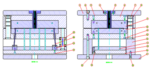 圖7:壓鑄模二維裝配圖 4、結束語 以筆記本電腦后蓋為例,介紹了基于大數據分析的鎂合金壓鑄模CAD集成系統的開發思路和壓鑄模快速設計流程。該系統根據企業生產實際,把產生鑄件缺陷的因素進行收集,采用大數據進行分析,在鑄件三維建模以及模具分型面設置,澆注系統設計以及模具加熱與冷卻系統設計時,起到積極的引導與優化作用,此外,其他主要功能還包括壓鑄模具標準模架庫和零件庫、壓鑄模設計手冊查詢、壓鑄模型腔尺寸計算與驗證系統、壓鑄模價格評估系統等,該系統即可以擺脫模具設計中復雜的查詢工作,有可以對將來出現的壓鑄缺陷進行收集整理,可實現快速壓鑄模具設計的數字化和智能化。