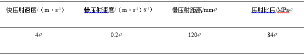 圖1:鎂合金壓鑄件及型腔抽氣系統結構圖 2、模擬仿真及結果分析 2.1 壓鑄件充型分析 通過大量前期試驗,選擇澆注溫度為680 ℃,最佳壓鑄工藝參數見表2,對AZ91D鎂合金散熱器進行充型仿真模擬。
