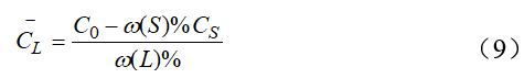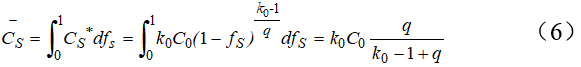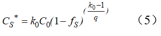 由式(5)可以看出區(qū)域內(nèi)溶質(zhì)元素的含量是由 決定的, ADC12鋁合金的平衡凝固系數(shù)k0<1,因此隨著q值增大,CS隨之減小。模具表面溫度低,導(dǎo)致冷卻速度