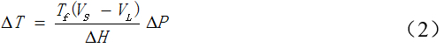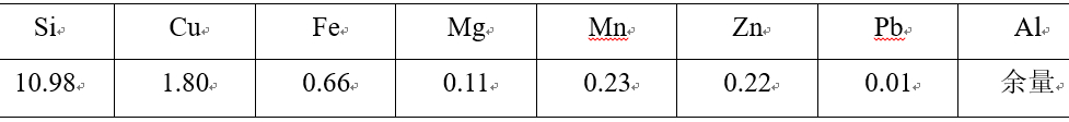 表3 各取樣位置模具溫度 研究表明,改變合金上的擠壓力,將引起其平衡結(jié)晶溫度的變化,并且有如下關(guān)系式: