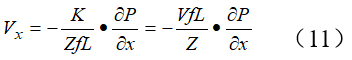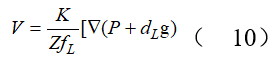 式中,K為滲透系數(shù),K=VfL2,它取決于枝晶間隙大小, 其中V為與枝晶間隙和結(jié)構(gòu)有關(guān)的常數(shù);fL為液相的體積百分?jǐn)?shù);Z為液相的粘度系數(shù);P為三維空間中的壓力梯度;g為重力加速度,dL為液體的密度。 當(dāng)考慮到一維流動及液體的均質(zhì)性,式(10)變?yōu)椋?/p>