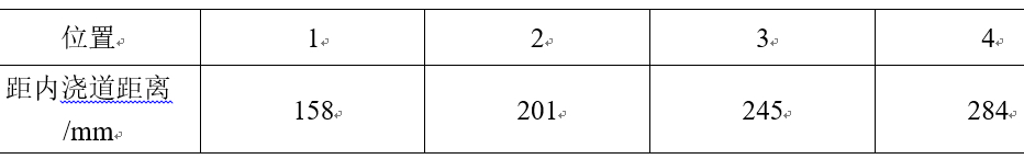 圖4 由表面到心部銅含量 圖4為ADC鋁合金擠壓件由表及里的Cu含量。可以看出,試樣1到試樣4隨著距內(nèi)澆口距離的增大,心部銅含量逐漸減小由1.87%將至1.81%。在零件充型凝固過程中,由于金屬液由外向內(nèi)凝固結(jié)晶形成枝晶骨架,鑄件外側(cè)先凝固的固相區(qū)在擠壓力的作用下發(fā)生塑性變形,這樣導(dǎo)致在充型的過程中擠壓力有損失,即零件每個(gè)部位上的擠壓力大小不同,且隨著到內(nèi)澆口距離的增大,擠壓力逐漸減小。根據(jù)Darcy定律,枝晶間液體金屬的流動速度V與壓力梯度呈線性關(guān)系,關(guān)系式為: