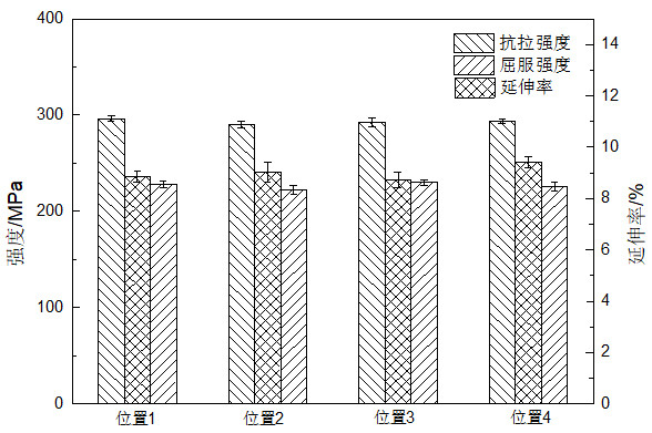 圖7:擠壓鑄造生產(chǎn)的鋁合金控制臂鑄件 受鑄件尺寸和結(jié)構(gòu)的限制,本體取樣時(shí)按客戶要求,在多個(gè)鑄件上指定位置分別取若干非標(biāo)試樣(基于GB T 228.1-2010),拉伸試驗(yàn)結(jié)果見圖 8。抗拉強(qiáng)度為293.2 MPa、屈服強(qiáng)度為226.48 MPa、伸長(zhǎng)率為9.01%,且全部高于設(shè)定值。后期在主機(jī)廠進(jìn)行的臺(tái)架試驗(yàn)、NVH測(cè)試、裝車試驗(yàn)、碰撞試驗(yàn)、耐久性試驗(yàn)等多項(xiàng)檢測(cè),全部通過,由此可見擠壓鑄造鋁合金控制臂的性能不低于鋼板沖焊下控制臂,由于涉及關(guān)鍵技術(shù),主機(jī)廠并未透露相關(guān)試驗(yàn)的具體數(shù)據(jù)和照片。