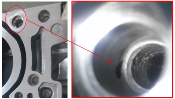 圖4:螺紋孔底部存在縮孔導(dǎo)致泄漏