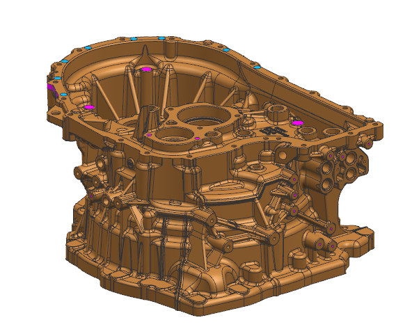 圖9 不同高速壓射速度對(duì)鑄件質(zhì)量的模擬結(jié)果 2.3 生產(chǎn)驗(yàn)證 將優(yōu)化壓鑄工藝參數(shù)在32 000kN布勒壓鑄機(jī)上做生產(chǎn)驗(yàn)證,壓鑄的鑄件外觀見(jiàn)圖10,表面質(zhì)量良好,沒(méi)有冷隔、氣孔等缺陷。