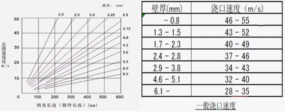 內(nèi)澆口速度v是根據(jù)鑄件壁厚來(lái)得出的,可以參考圖2進(jìn)行設(shè)定。