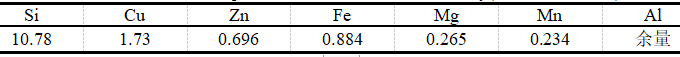 表1 ADC12鋁合金化學(xué)成分 wb/% 圖1為試驗使用的ADC12鋁合金的重力鑄造組織。其組織主要由白色樹枝狀α-Al相和黑色針片狀的共晶Si相組成。