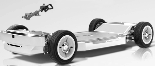 圖8 電動(dòng)車(chē)驅(qū)動(dòng)系統(tǒng)壓鑄件 如果使用雙電機(jī)驅(qū)動(dòng),則對(duì)壓鑄件用量的彌補(bǔ)作用更強(qiáng)。 2.3 推動(dòng)一體化壓鑄技術(shù) 在減重、提效和降本的多重壓力下,2019年特斯拉提出了車(chē)身一體成形鑄造方法。采用一體成形壓鑄的方式生產(chǎn)Model Y的整個(gè)后部車(chē)體,將原先由多工序所需的70多個(gè)零件集成為1個(gè),減少了組裝焊接等程序,減重約30%,降低制造成本約40%。Model Y 的一體壓鑄后車(chē)身僅重 66 kg,比尺寸更小的 Model 3 同樣部位輕了10~20 kg,見(jiàn)圖9。特斯拉Model Y4680的CTC版本將應(yīng)用2-3個(gè)大型壓鑄件替換由370個(gè)零件組成的整個(gè)下車(chē)體總成,重量將進(jìn)一步下降10%,對(duì)后續(xù)里程可增加14%。目前,也有壓鑄廠家在策劃或?qū)嵤┮惑w化壓鑄汽車(chē)底盤(pán)或滑板式汽車(chē)底盤(pán),見(jiàn)圖10及圖11。如果采用一體化全鋁壓鑄車(chē)身,重量將在200~250 kg,而同級(jí)別鋼制車(chē)身的重量在350~450 kg,重量降低約150~200 kg。